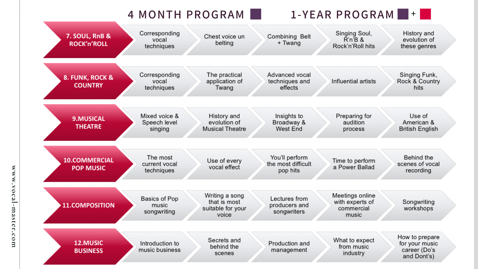 You will know the difference between all of the genres of popular music, and will sing accordingly to the style of your chosen repertoire!